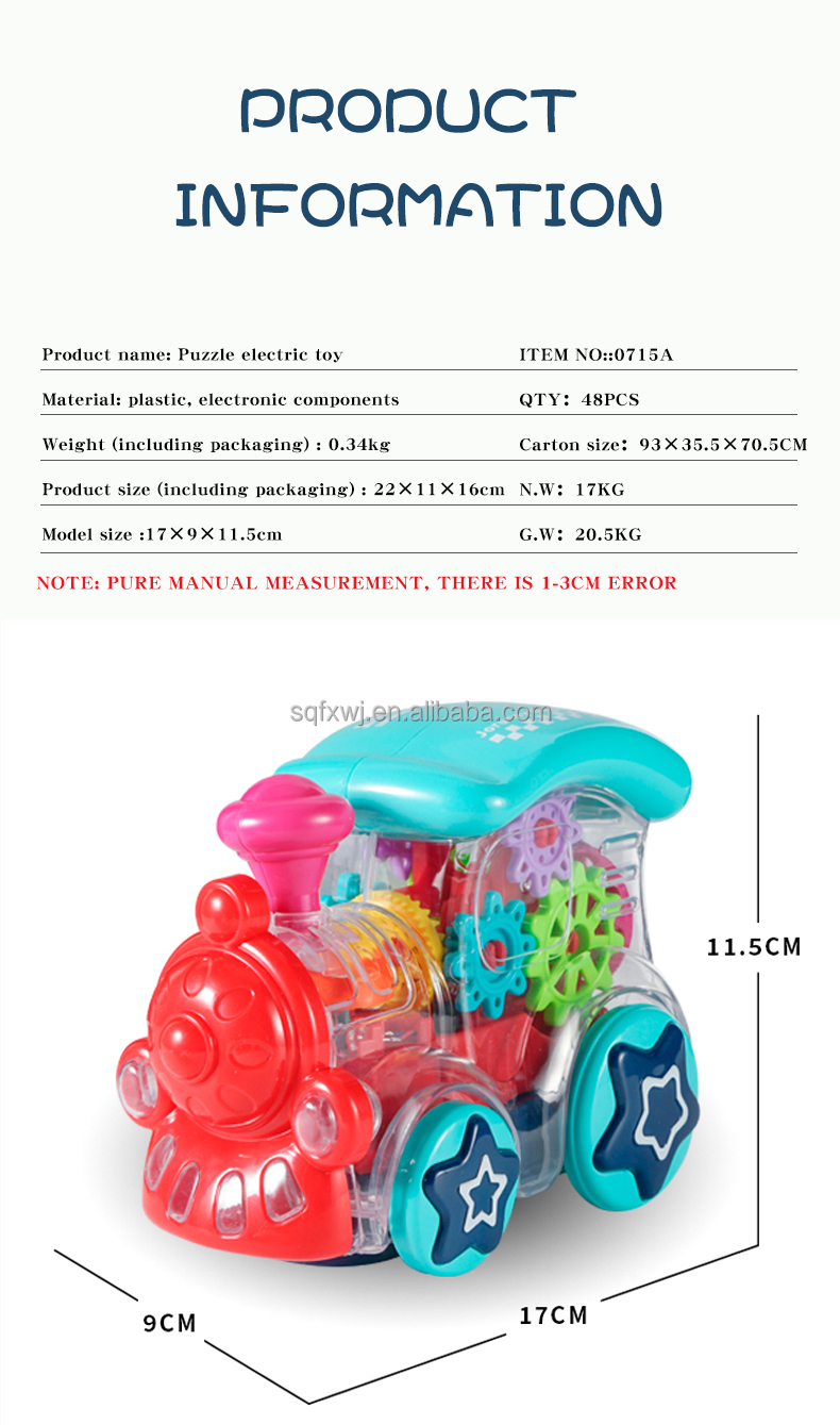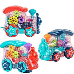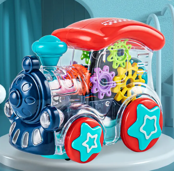 Tren eléctrico de juguete para niños, rueda eléctrica con engranaje Universal transparente, con luz y música.